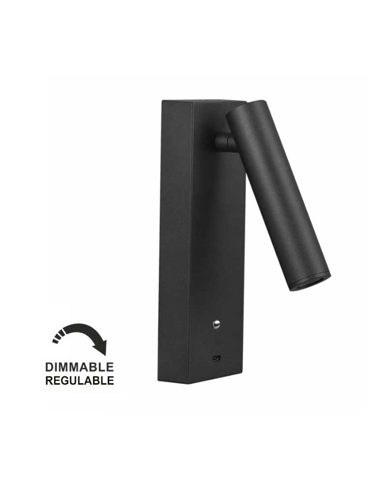 LED Wall light black color 4W Aluminum USB mobile charger switch 2700 K.