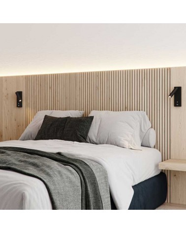 Decorative LED wall light designed for indoor with a minimalist aesthetic and a built-in USB port. The front wall lamp is tiltable and the light source is oriented where desired. Available in matt black and white finishes.