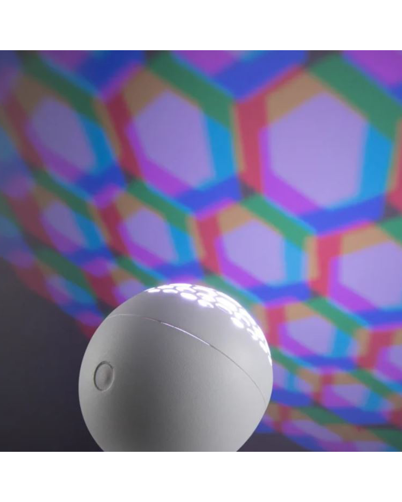 Decorative light effects highlight the wall. Beautiful RGB LED lamp can be used both as a wall lamp and as a table lamp. Made of plastic with indirect lighting with bright colors that create different graphic patterns. It has an on and off switch. The lamp cable is covered with fabric sheath.