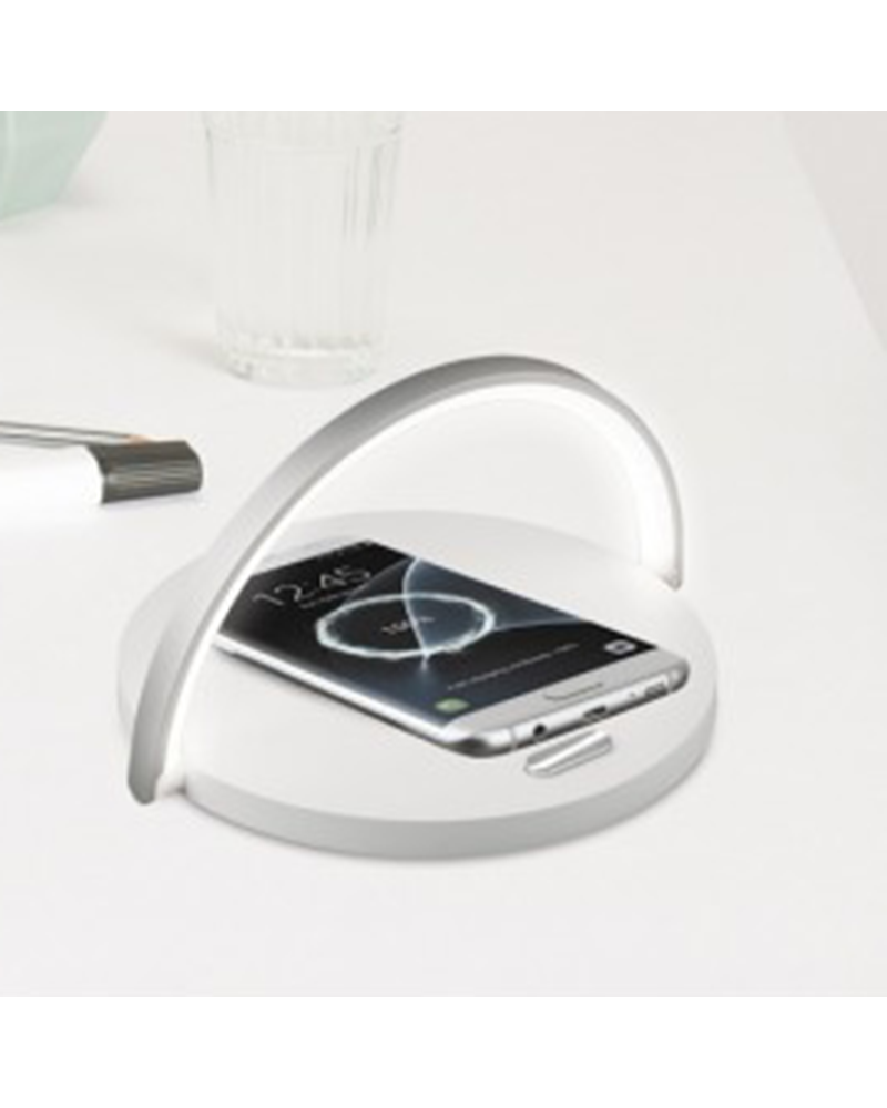 Flexible table lamp with a cold light temperature of 4000K, with a wireless induction charger for mobile phones. Touch control with 3 different intensities. Smart device identification. Once the load is finished, it has an auto-disconnection.