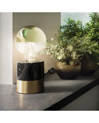 Original table lamp, ideal for LED filament bulbs. This piece provides a vintage style, metal support and high quality black marble with a brass finish. Bulb not included, see references 174-4-023, 174-4-019, 174-4-033..