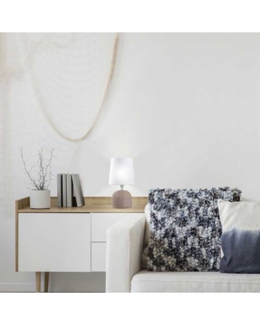 The table lamp is an elegant piece of lighting that measures approximately 28cm in height. Its base is made of ceramic, presenting an attractive combined brown finish that gives it a touch of sophistication and style. The shade of this lamp, made of fabric, is characterized by its white finish, which brings luminosity and freshness to any space where it is located.