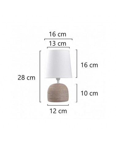 Table lamp 28cm in ceramic and fabric with brown and white finish E14