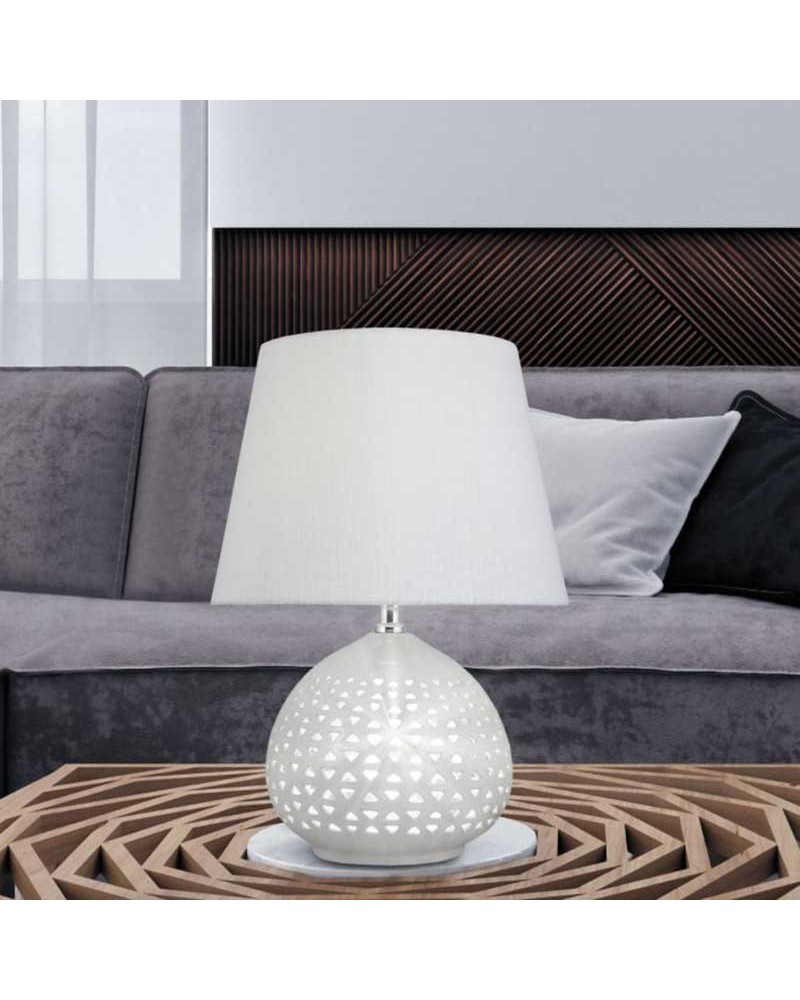 The fabric shade, white finish, complements the modern aesthetic of the lamp, softening and diffusing the light in a way uniform. With E27 socket, it allows the use of bulbs up to 60W. Additionally, the lamp is equipped with a double ON/OFF switch on the cord, providing convenient control over the light intensity.