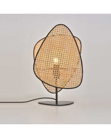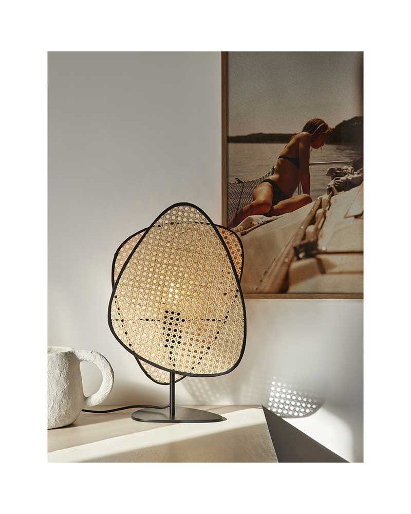 Features a double cannage flat screen, whose natural texture adds warmth and style to its surroundings. The shaft offers a natural finish that highlights its organic beauty, while the matte black metal structure provides a modern and balanced contrast. With an E27 socket, for bulbs up to 40W, allowing you to customize the intensity and type of light according to your preferences and needs. Bulb not included.