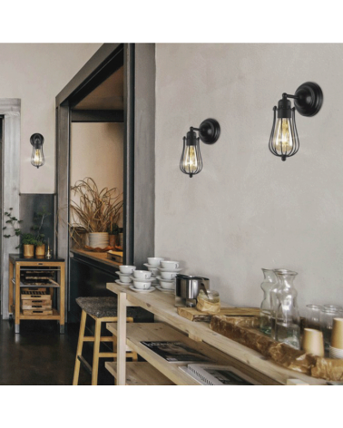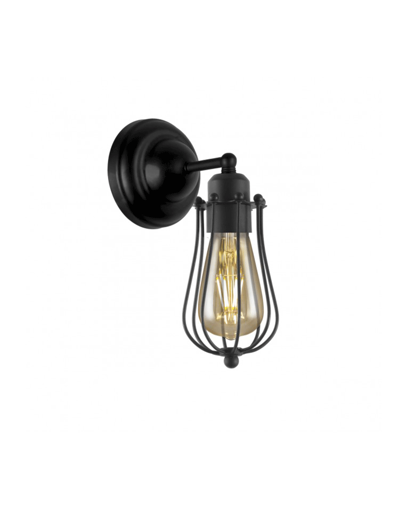 LED Industrial line 29cm wall lamp with metal grid finished in black 1x60W E27