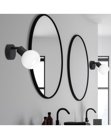 Wall light made of metal with white frosted glass screen, simple and versatile design ideal for bathrooms and kitchens. Available in satin nickel, brass or black finishes. Labeled luminaire, the focus can be adjusted in position.