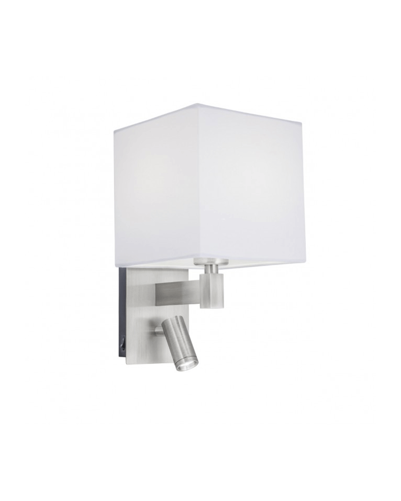 LED Wall lamp satin nickel finish with square lampshade and oscillating spotlight E27 + 3W 4000K 300Lm