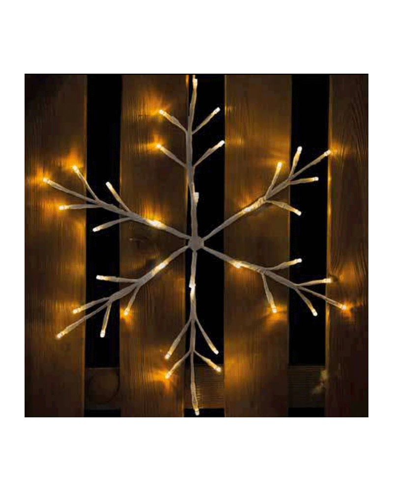 Motivo navideño en forma de copo de nieve de 40cms de diámetro con luces LED disponible en luz cálida. Apto para uso interior. Ideal para decorar escaparates, ambientes hogareños, etc. Cable de alimentación incluido. Voltaje 230V. Consumo: tan solo 1,5W. Incluye cable de alimentación de 3 metros.