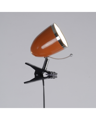 Foco articulado con pinza con una pantalla de metal disponible en varios acabados verde oscuro, amarillo, naranja, blanco, cromo, azul o negro. Abrazadera de plástico la cual permite su colocación en muebles u otros objetos, llevando la luz a donde tú quieras. Pinza robusta mantiene la luminaria firmemente en su lugar y a la vez no daña el material al que está fijada. Con interruptor facilitando el encendido y el apagado. Diferentes colores para dar un estilo muy chulo a cualquier espacio.