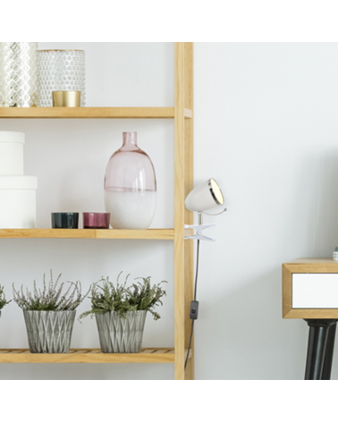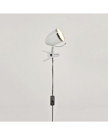 Foco articulado con pinza con una pantalla de metal disponible en varios acabados verde oscuro, amarillo, naranja, blanco, cromo, azul o negro. Abrazadera de plástico la cual permite su colocación en muebles u otros objetos, llevando la luz a donde tú quieras. Pinza robusta mantiene la luminaria firmemente en su lugar y a la vez no daña el material al que está fijada. Con interruptor facilitando el encendido y el apagado. Diferentes colores para dar un estilo muy chulo a cualquier espacio.