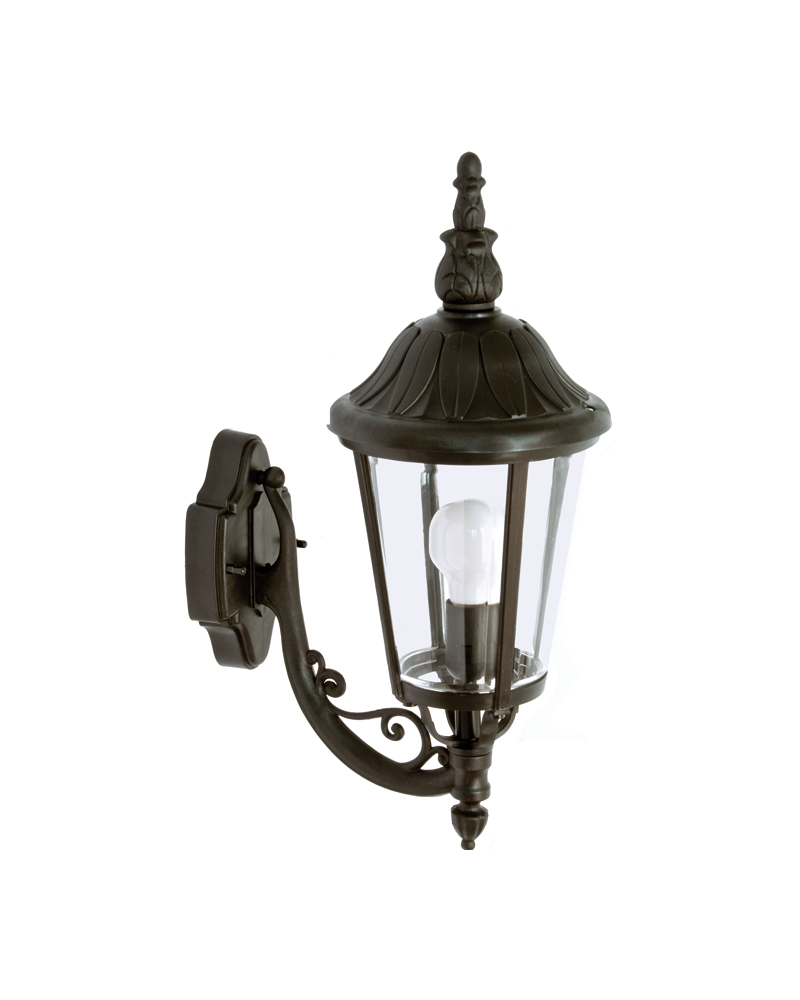 Aplique de exteriores IP44 para lámpara de rosca E27 alto 52cms, con cabezal hacia arriba y con difusor de policarbonato UV resistente. Disponible en color negro y marrón óxido.