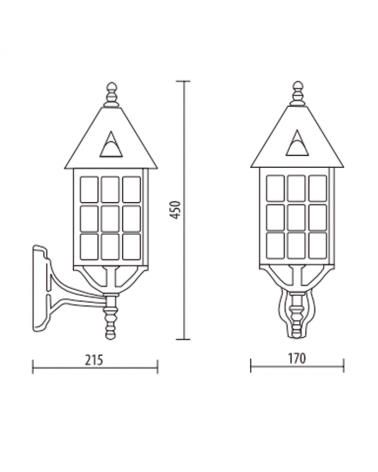 Aplique de exteriores estilo clásico IP44 E27 alto 45cms, con cabezal hacia arriba