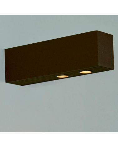 Aplique de exterior LED decorativo ideal para iluminar las cálidas noches de verano en terrazas, jardines y zonas chill-out temperatura lumínica de 3000K IP65. Fabricado en aluminio con acabado corten con dos de sus lados con láminas de madera. 4 Led de 6,4W. También ofrece la opción de acabado pintado sin madera. Contiene dos bulto, aplique y perno.