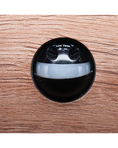 Elegante aplique de exterior fabricado de aluminio acabado gris oscuro y madera natural. LED integrado de 15W con luz cálida 3000K. Con una protección IP54. Incorpora sensor de presencia a una distancia de entre 6 a 10 metros y 120º de ángulo. Con interruptor de día y noche para así evitar que se ilumine durante el día. Puede usted elegir el temporizador entre 5 y 10 minutos. Perfecto para la iluminación de zonas de paso.