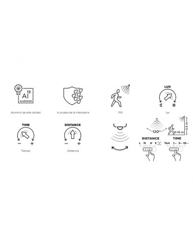 Equipado con un sensor de presencia que detecta automáticamente la actividad en el área y ajusta la iluminación según sea necesario, con ángulo de registro de 120° y un alcance de hasta 15 metros. Orientación múltiple ofrece una gran flexibilidad que le permite abarcar cualquier área que desee de manera completa.