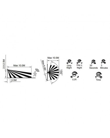 Fabricado de aluminio garantiza durabilidad y resistencia a los elementos. Este aplique está disponible en dos acabados, blanco o negro. Con una potencia de 20W, esta luminaria emite una luz cálida a 3000K. Equipado con un sensor de presencia que detecta automáticamente la actividad en el área y ajusta la iluminación según sea necesario, con ángulo de registro de 150° y un alcance de hasta 10 metros.