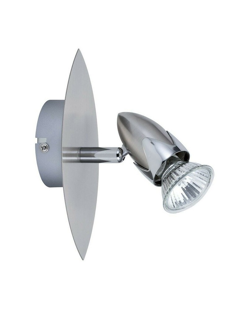 Aplique 50W GU10 bala niquel satinado con adorno base forma de hoja oscilante incluye bombilla