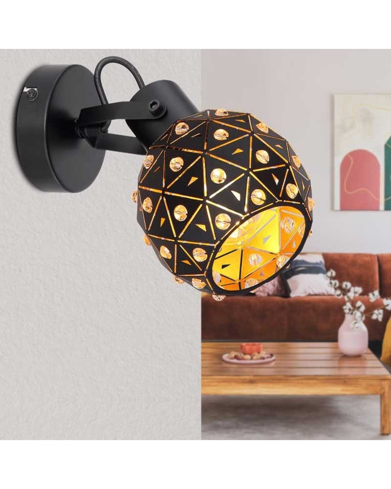 Este aplique de pared de diseño original que combina metal y cristales K9 con un acabado negro mate. Su estilo inusual y elegante lo convierte en una pieza destacada en cualquier espacio de tu hogar. Lo que realmente hace que este aplique sea único son los hermosos cristales K9 que adornan la pantalla.