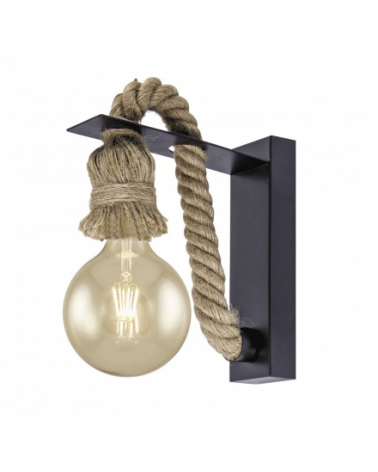 Aplique 18cm metal negro con portalámparas en cuerda 1 X 60W E-27