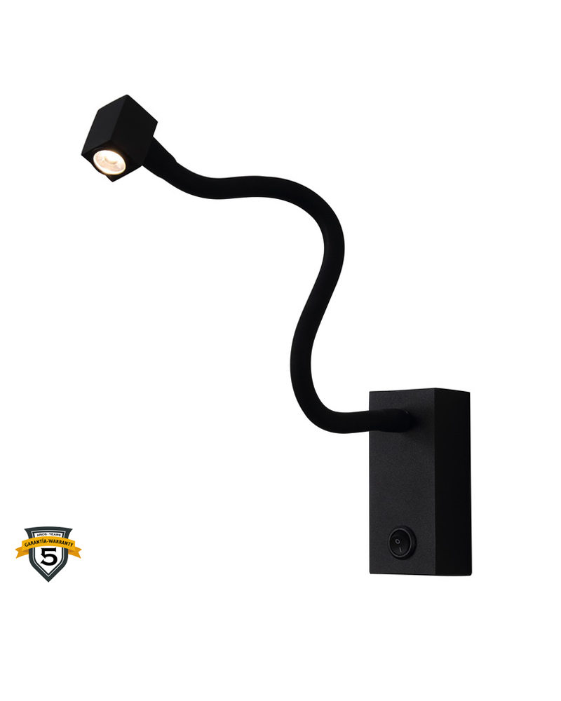 Aplique de pared LED 3W temperatura de luz cálida 3000K. Fabricado de aluminio y acrílico disponible en acabado en blanco o negro, foco forma cuadrada. Con interruptor de On/Off para facilitar el encendido y apagado.