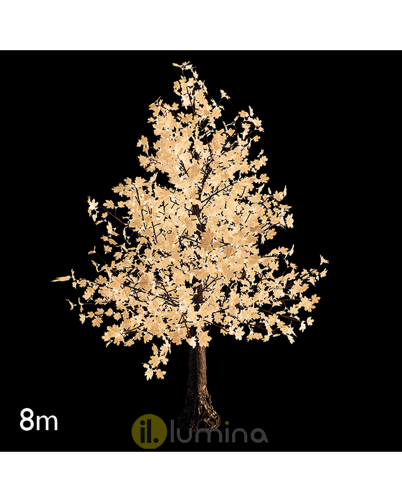 Elegante y decorativo árbol de arce de 8m iluminado con 4000 luces LED. Disponible en luz blanca fría o luz cálida. Apto para exteriores IP44. Le dará a tus ambientes navideños un estilo moderno y realista.