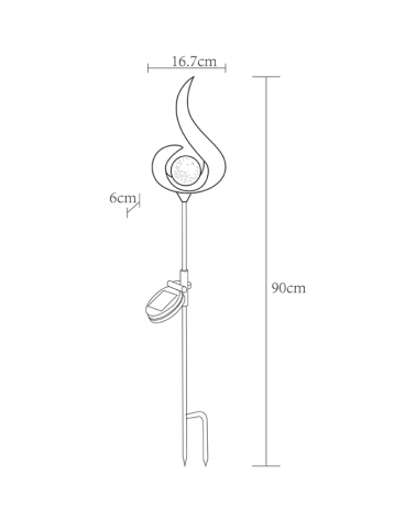 Esta lámpara solar de metal de color bronce impresiona por su excelente acabado y su elegante apariencia. Contiene bateria y le permite estar encendida entre 6 y 8 horas. Su pantalla esférica simular un cristal roto, con IP44 es adecuada para exteriores.