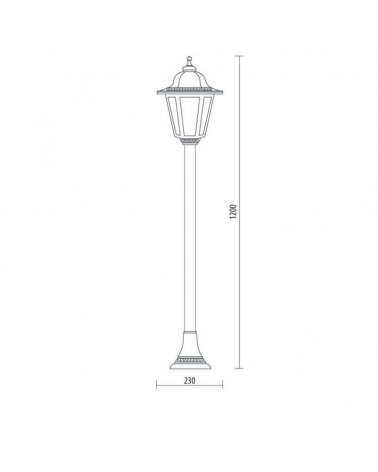 Farola clásica baliza IP44 15W E27 alto 120cm con difusor de policarbonato biselado UV resistente