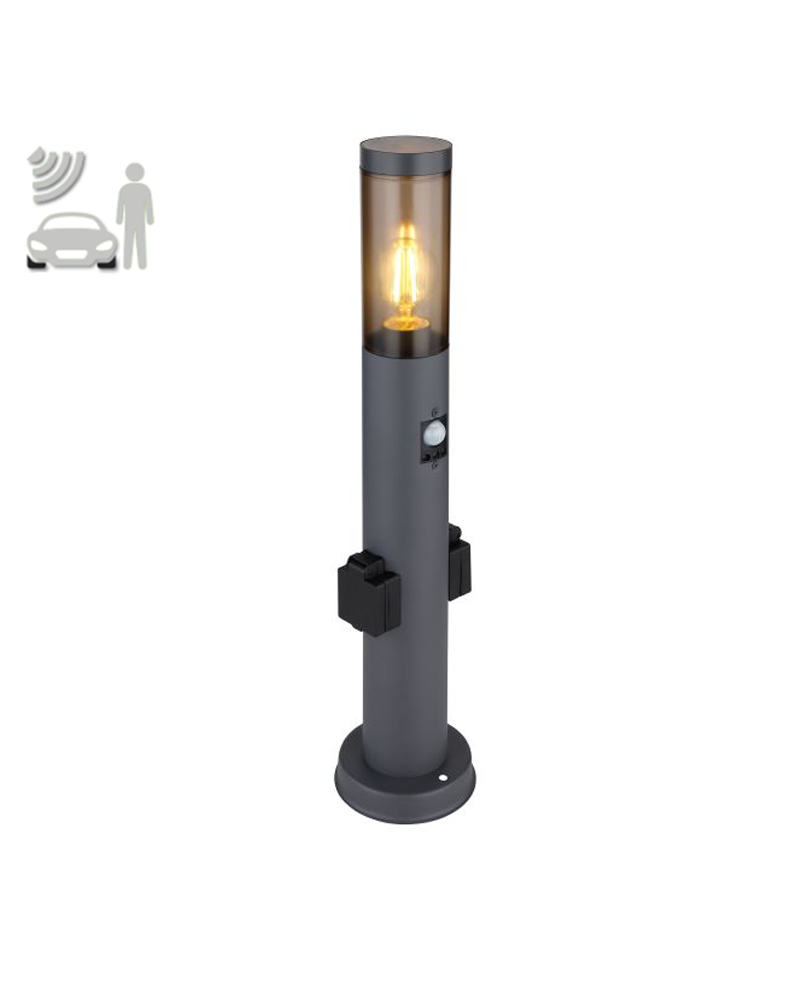 Baliza para exterior 60cm acero inoxidable acabado antracita con enchufes estanco E27 15W IP44 SENSOR MOVIMIENTO