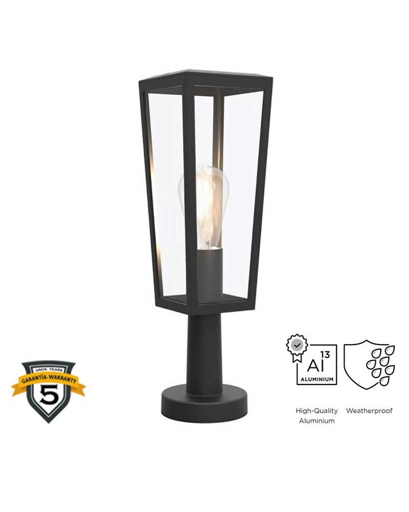 Baliza de exterior 42,6cm de aluminio y cristal acabado negro E27 IP44
