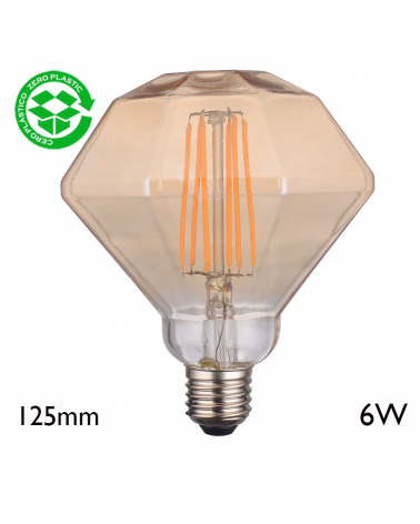 Bombilla Rombo Ámbar 125mm filamentos 6W LED E27 2700K 750Lm
