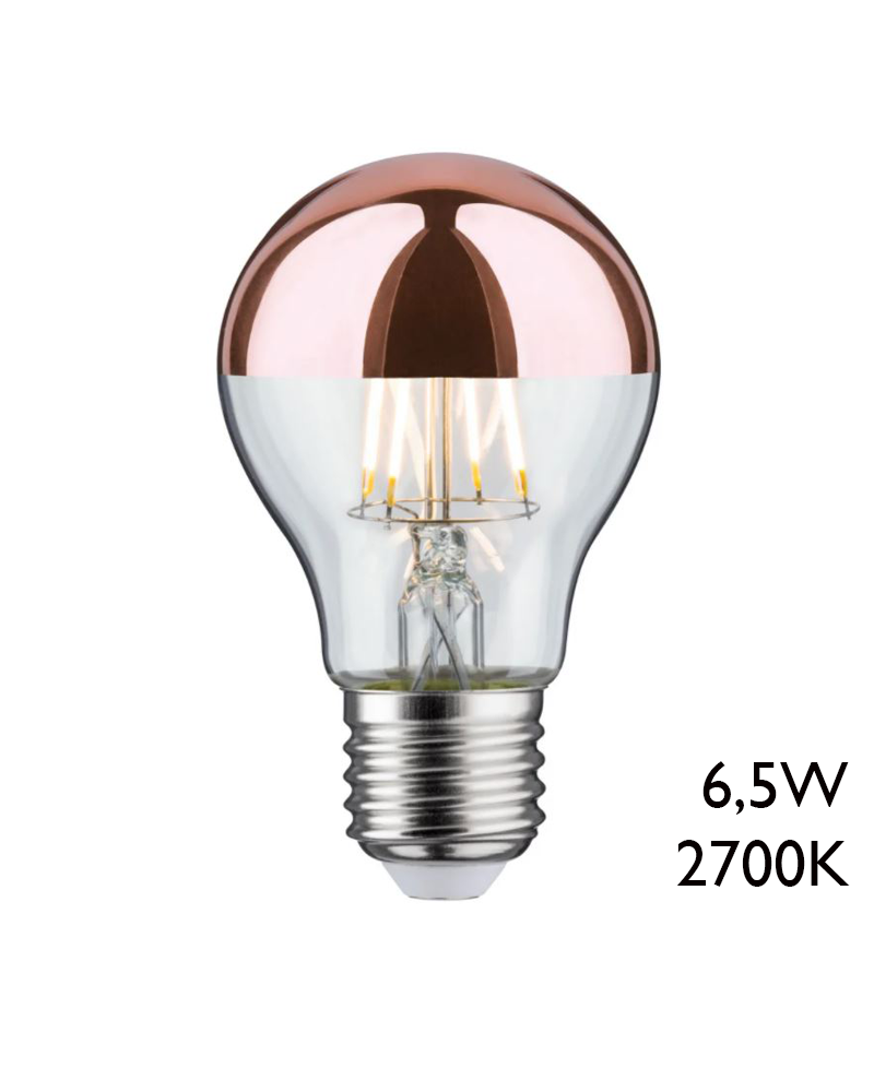 Bombilla Estándar Cúpula Espejo Cobre 60 mm. filamentos LED E27 6,5W 2700K 600Lm.
