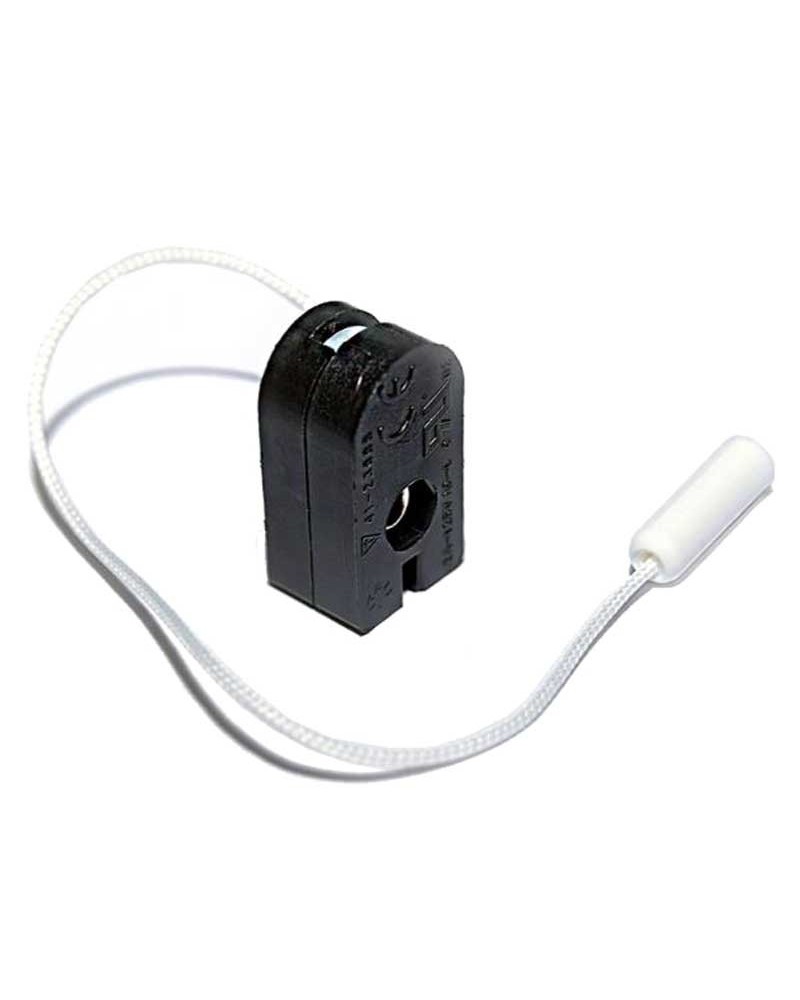 Interruptor con cordón tirador. Contactos en latón. Tensión 250V. Índice de protección IP20. Cumple con las normativas EN 61058-1, UL 1054 y JIS C 8304