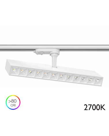 Foco de carril cilindro liso 5,5cm con aro decorativo de acero LED 7W 2700K 665Lm regulable adaptador monofásico oscilante