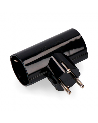 Clavija doble con baquelita T/TL 16A 250V disponible en color negro o blanco. Material: baquelita, que no es un material conductor de la electricidad, por eso aisla las terminales eléctricas.