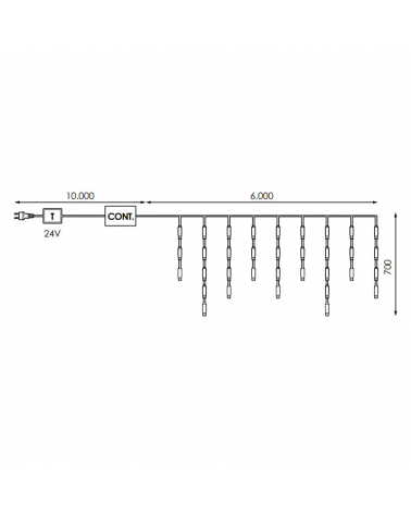 Cortina de LEDs 6x0,7m efecto estalactita icicle estalactita, cable transparente con 864 leds IP44 apta para exterior