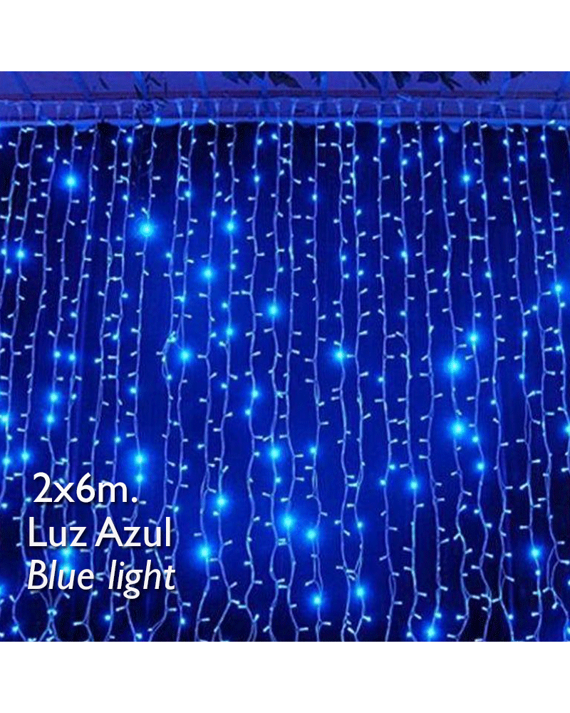 Cortina LED 2x6m Leds azul, cápsula clara, empalmable y apta para exteriores IP65