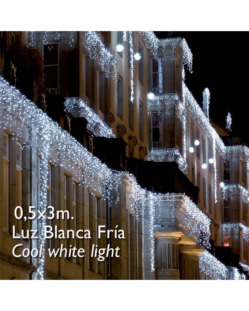 Cortina de LEDs blanco frío 3x0,5m efecto estalactita, con 114 leds IP65 apta para exterior