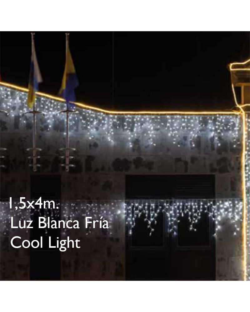 Cortina de LEDs 4x1,5m blanco frío efecto estalactita, con 304 leds IP65 apta para exterior