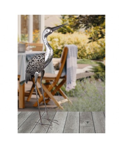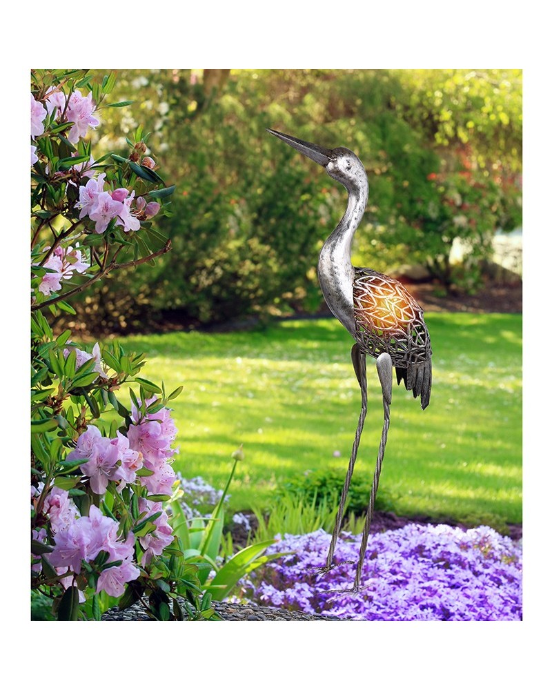 Lampara de pie para jardin solar forma grulla 77cm metal gris