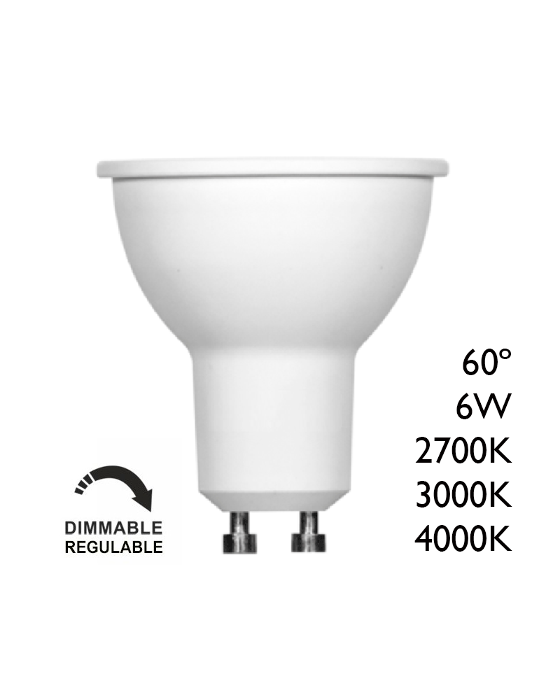 Spot Dicroica 50mm LED Regulable 6W GU10 60° 2700º K 3000ºK 4000ºK luz cálida y luz neutra