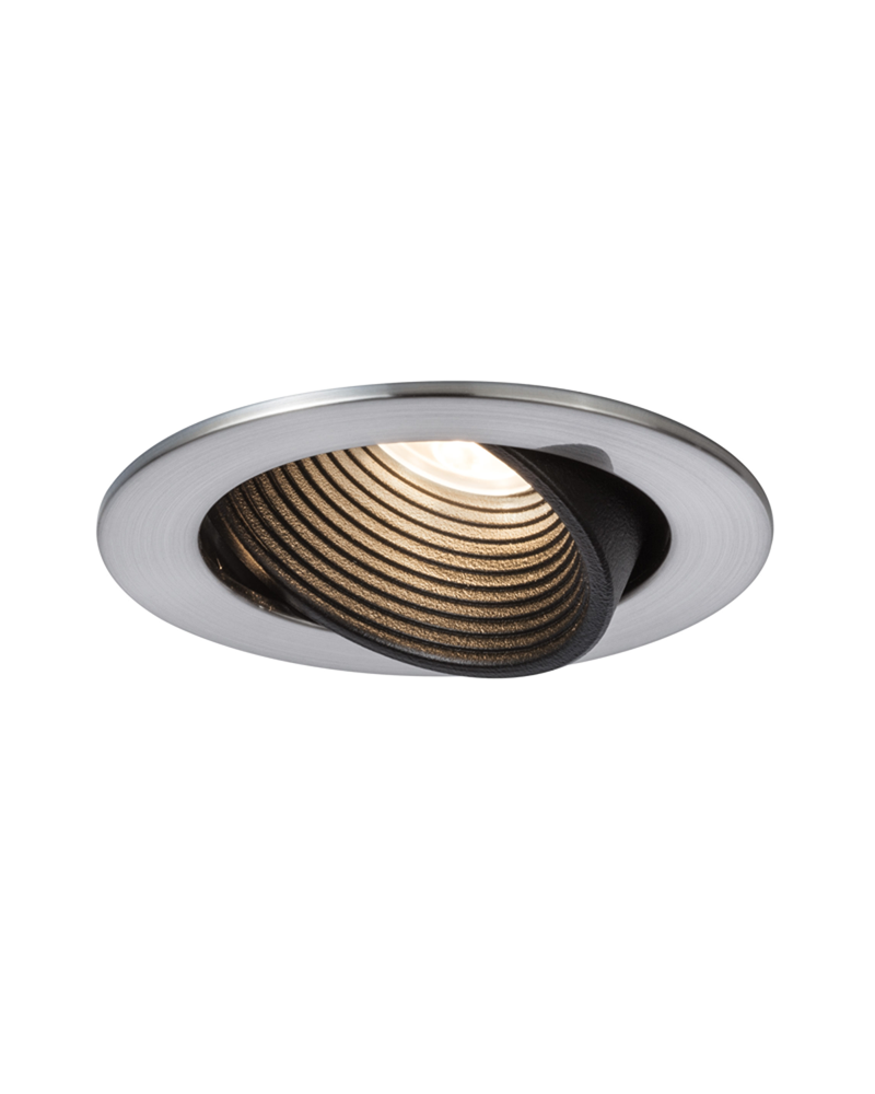 Downlight gris cromado con marco redonda. Lámpara LED (oscilante) incluida en el volumen de suministro. Temperatura de color: 2700K - Blanco cálido