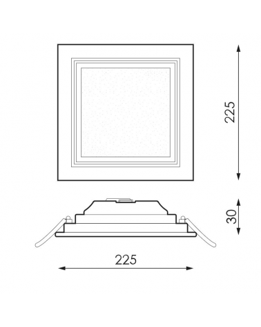 Downlight cuadrado LED empotrable 20W de 22,5x22,5cm en color gris. Disponible en luz cálida 3000K , luz blanca fría 4000K. Necesita hueco para empotrar de 20x20cm. Disponible según pedido controladores Bluetooth, Dali o Ctouch. Driver extraíble y larga duración de 50.000 horas.
