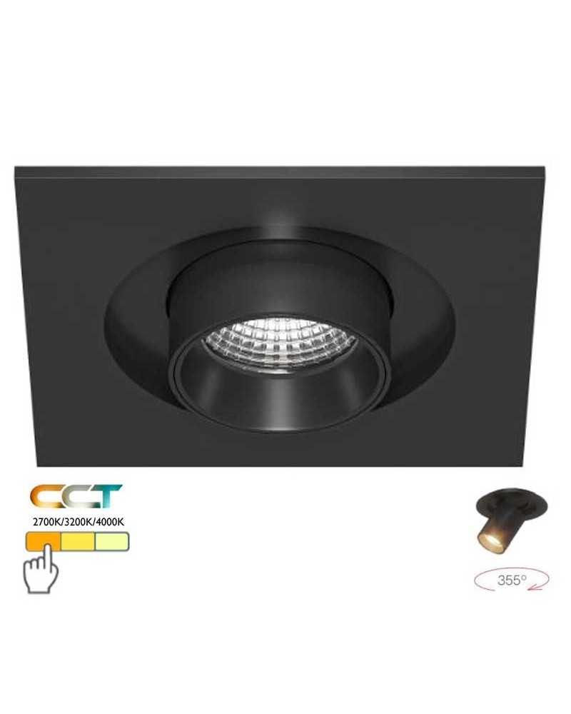 Downlight empotrable cuadrado convertible en proyector LED 6W oscilante 355° CCT SWITCH
