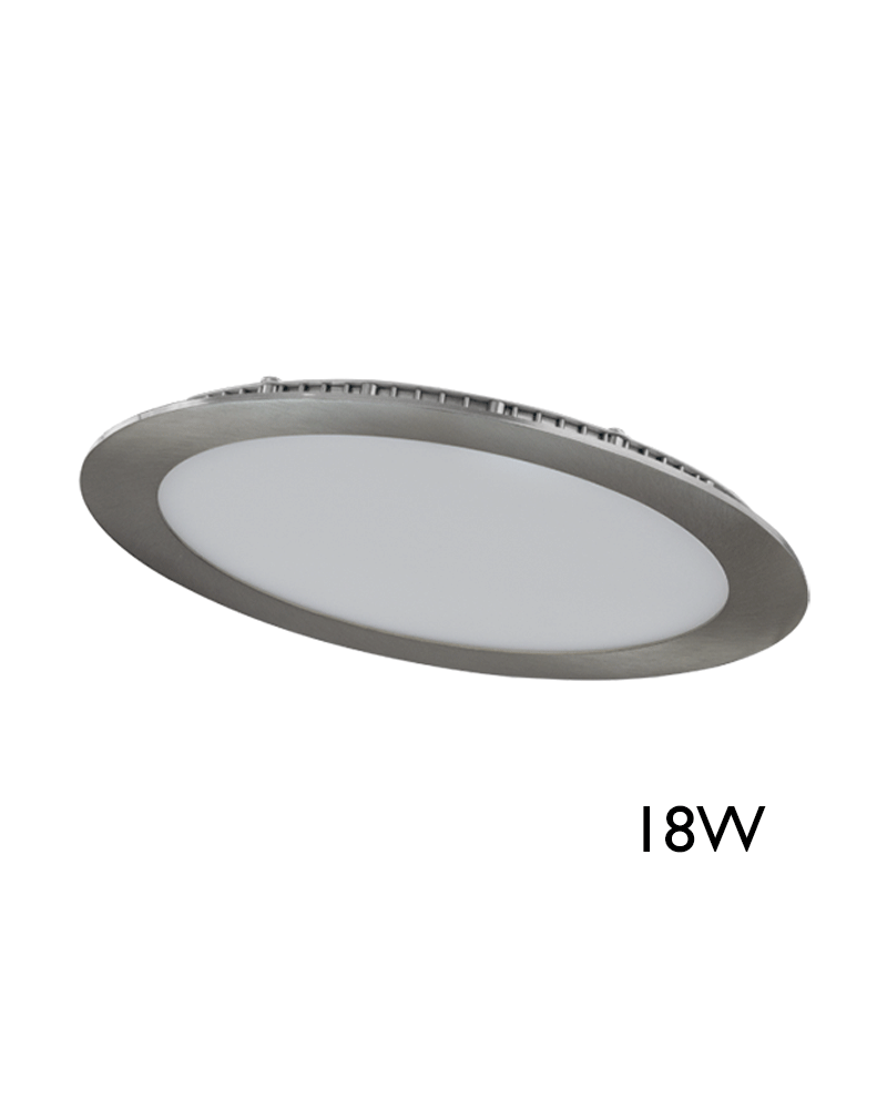 Downlight LED empotrable de 18W de diámetro 22,50 cms, color gris. Módulo PCB fabricado en aluminio para favorecer la disipación de temperatura. Placa de policarbonato interna para mejorar la reflexión lumínica. Luz perimetral. - Acabado: gris RAL 9006. - Medidas: diámetro 225mm, alto 18mm. - Agujero de corte: diámetro 205mm. - Ángulo luz 120º. Encendido inmediato. - Material: cuerpo de aluminio, difusor de poliestileno. - Luminosidad: 1.385 Lúmenes. - Clase energética: A+. Ahorra en tu factura de luz. - Larga vida útil (más de 35.000 horas).
