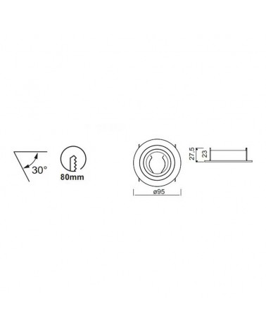 Está diseñado para bombillas con casquillo GU10, brindando una capacidad lumínica de hasta 12W. Con un agujero de corte de 80mm, la instalación de este aro empotrable es sencilla y adaptable a una variedad de superficies. Bombilla no incluída.