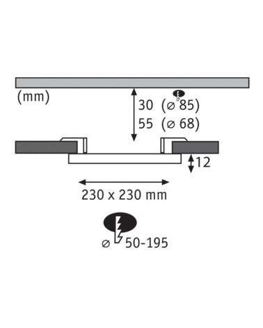 El panel empotrable redondo con un tamaño de 230 mm y una potencia de 16 vatios en blanco proporciona una amplia luz neutra. Gracias a la tecnología flexible , los resortes de sujeción se pueden ajustar libremente entre 50 y 195 mm para la instalación. Por lo tanto, el panel se puede instalar tanto en perforaciones existentes como en perforaciones nuevas creadas con brocas estándar. La función de atenuación de 3 pasos integrada ofrece tres niveles de atenuación en combinación con un interruptor de luz comercial convencional. La función de memoria almacena el nivel utilizado más recientemente hasta la próxima activación. Para diámetros de orificio mayores de 85 mm, se necesita una profundidad de cavidad de al menos 30 mm. Para diámetros de orificio mayores de 68 mm, se necesita una profundidad de al menos 55 mm.