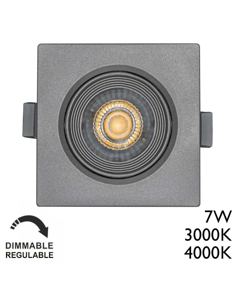 Downlight cuadrado marco gris RAL 9006 LED empotrable 7W de 9x9cm Regulable TRIAC