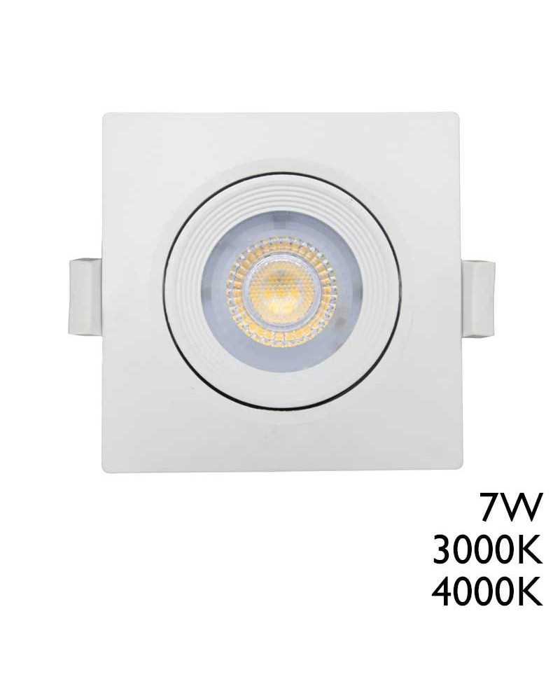 Downlight cuadrado LED empotrable 7W de 9x9cm en color blanco . Disponible en luz cálida 3000K , luz blanca fría 4000K. Necesita hueco para empotrar de 10x10cm.
