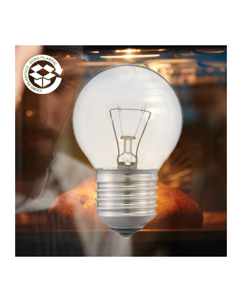 Lámpara esférica clara para hornos de 40W, rosca E27. Para hornos hasta 300º.